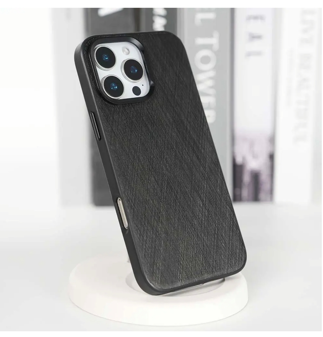 Faux leather case with metallic texture For iPhone 16
