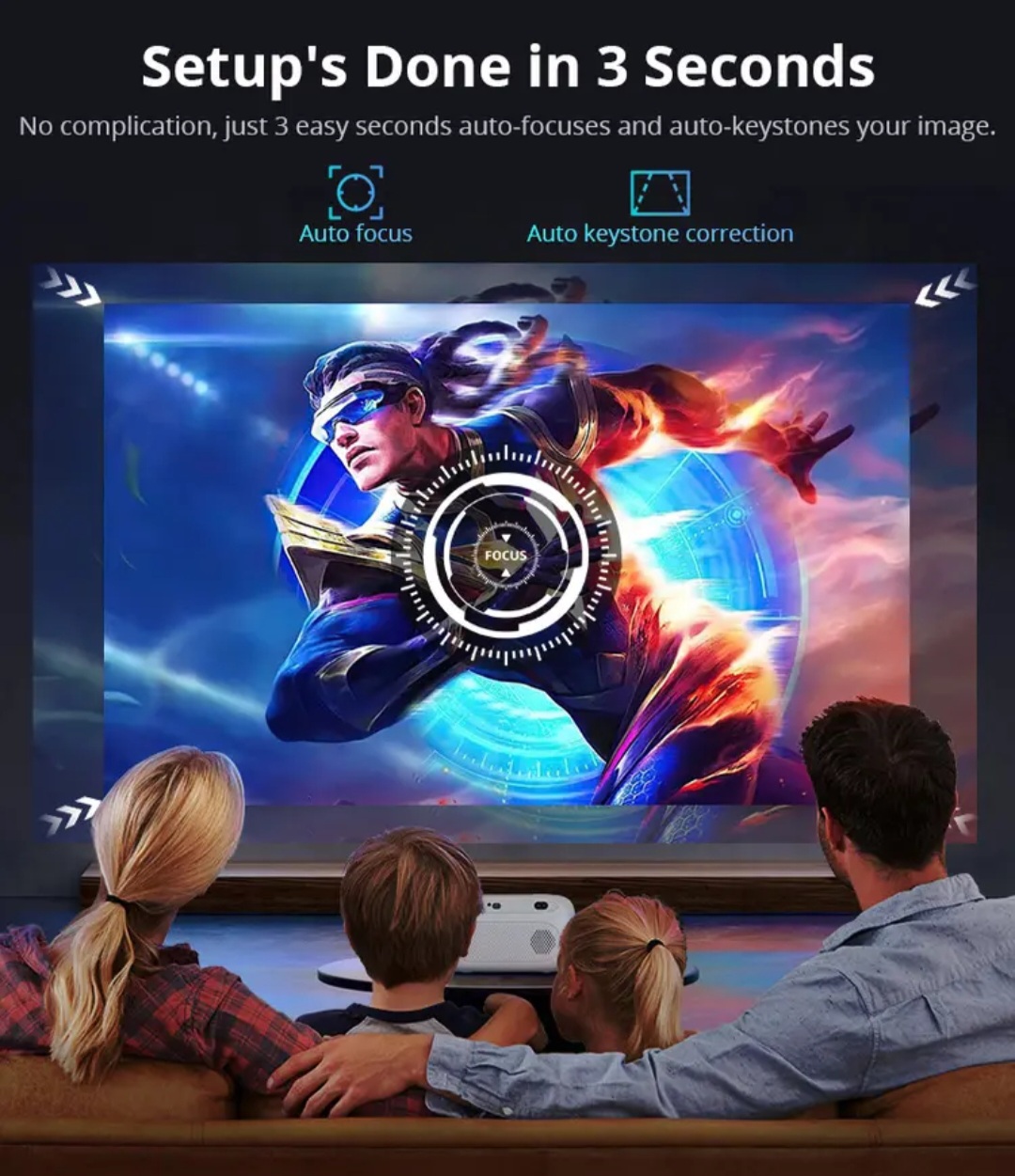 Keystone კორექცია: Horizontal: Manual, Vertical: Auto ±40°